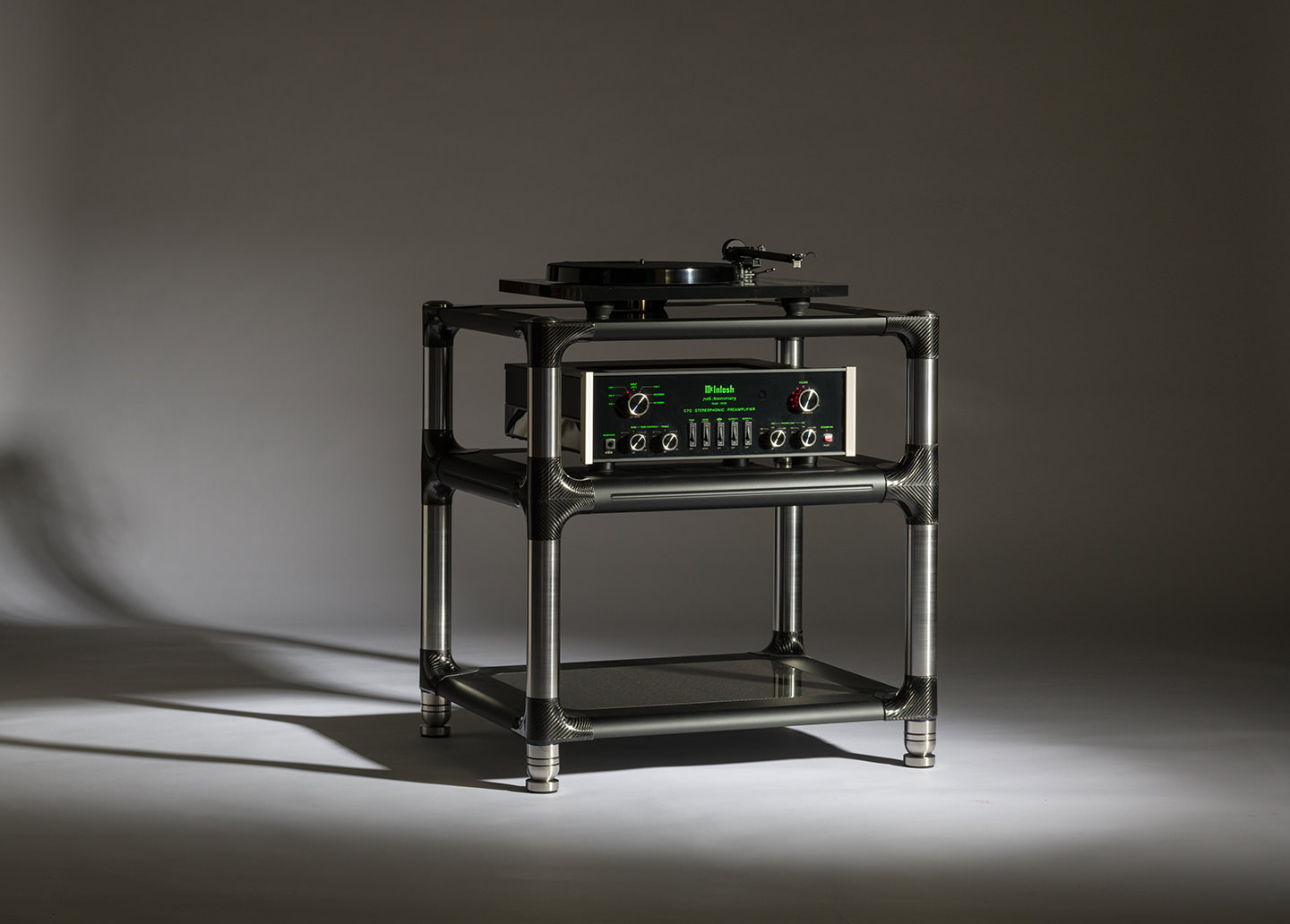 50 mm çapındaki sağlam paslanmaz çelik yapı, raflara stabilite sağlayan ve aynı zamanda amortisör görevi gören özel karbon fiber bağlantı elemanları kullanılarak birleştirilmiştir. Her raf , Reference ve Revolution serilerinde bulunan denenmiş ve test edilmiş sistem