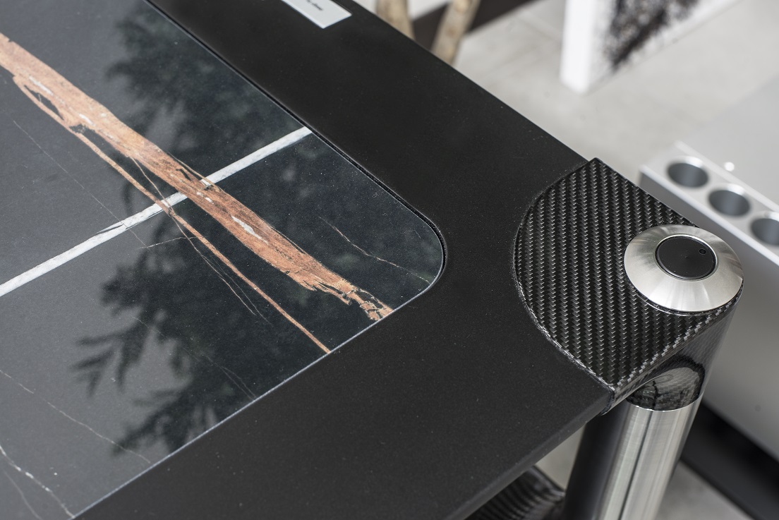 Temiz ve uyumlu çizgiler, taşıyıcı yapı ile raf arasındaki bağlantının her bölgesinde kullanılan karbon fiber gibi yüksek teknolojik özelliklerle veya seramik ve saten yüzeyli çelik gibi daha klasik teknolojilerle mükemmel bir şekilde bütünleşiyor.
