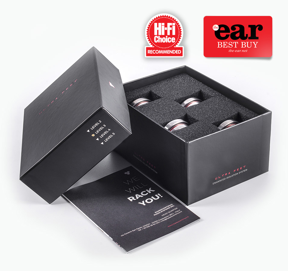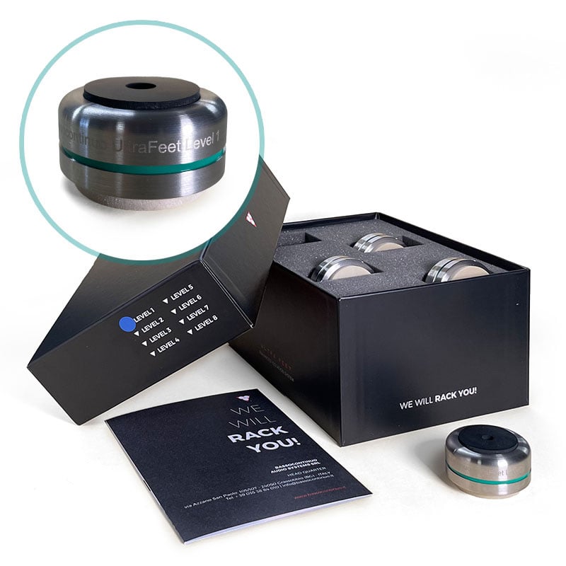 Elastik veya viskoelastik malzemelerin titreşimlerden gelen mekanik enerjiyi emerek artık ısıya dönüştürmesini sağlayan basit bir fizik prensibinden yararlanarak. Elektroniğe adanmış tüm Ultrafeet'lerimiz (Seviye 1'den Seviye 5'e kadar), farklı yoğunluklarda iki farklı ayırıcı malzemeyle donatılmıştır. İşlevleri, zeminden gelen titreşimlerin (hoparlörlerin ses basıncından kaynaklananlar) ve kaynakların motorlarından gelen titreşimlerin büyük bir kısmını sönümlemektir. Elbette, mikro titreşimlerden ve yüksek doğruluktan bahsediyoruz. Bu nedenle, her meraklının arzuladığı mükemmel sonucun çoğu zaman bu ayrıntılara gösterilen özenden geçtiğinin farkındayız.